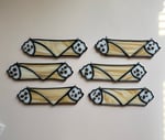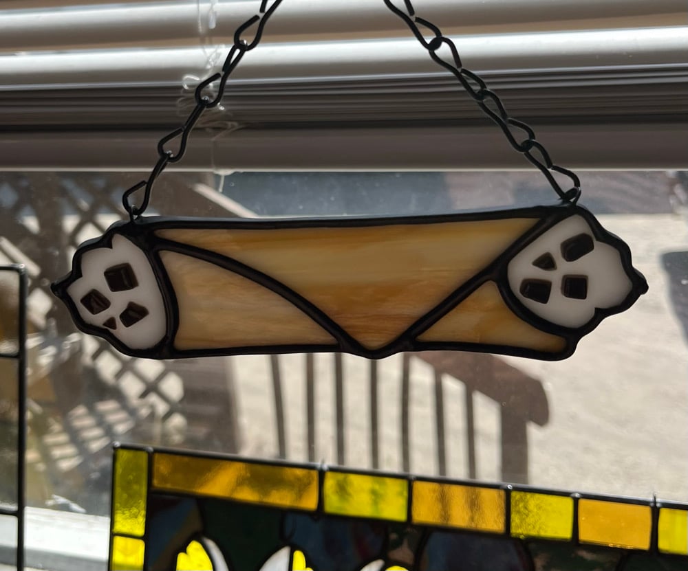 They each measure roughly 6.5 inches by 2 inches and come with chain attached for hanging.
