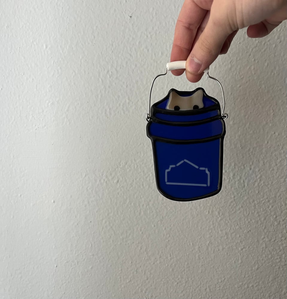 These charms measure roughly 5 inches by 3 inches. The Lowes logo and Francine is kiln fused. The kittle handles are also handmade and can be used to hang the piece if desired.